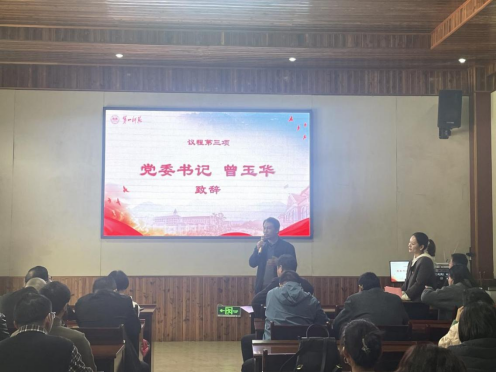 学院党委书记曾玉华致辞,他代表数统院全体师生向他们三位多年以来兢兢业业工作、勤勤恳恳付出表示崇高的敬意和衷心的感谢!他动情地说道,这次欢送会不仅仅是光荣的退休仪式,更是新老教师在工作和精神上的交流学习会,正是有许多像三位老师这样的一群老师的辛勤奉献,才造就了数统院蓬勃发展、欣欣向荣的大好局面。年轻的老师要传承老教师忘我工作、无私奉献的精神,踔厉奋发、担当作为。衷心祝福三位老位退休快乐!