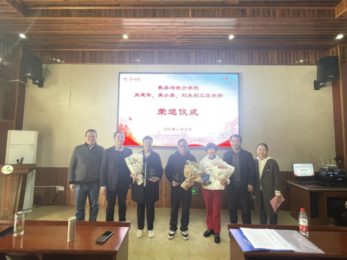 11月25日下午,伟的国际1946bv分工会举行了一场简朴又温馨的荣退仪式,欢送肖建华、刘永利、禹小英三位老师光荣退休,数统院党委书记曾玉华、副院长(主持工作)陈爱永、党委副书记马青梅、副院长王增赟及全体教师参加,仪式由马青梅主持。